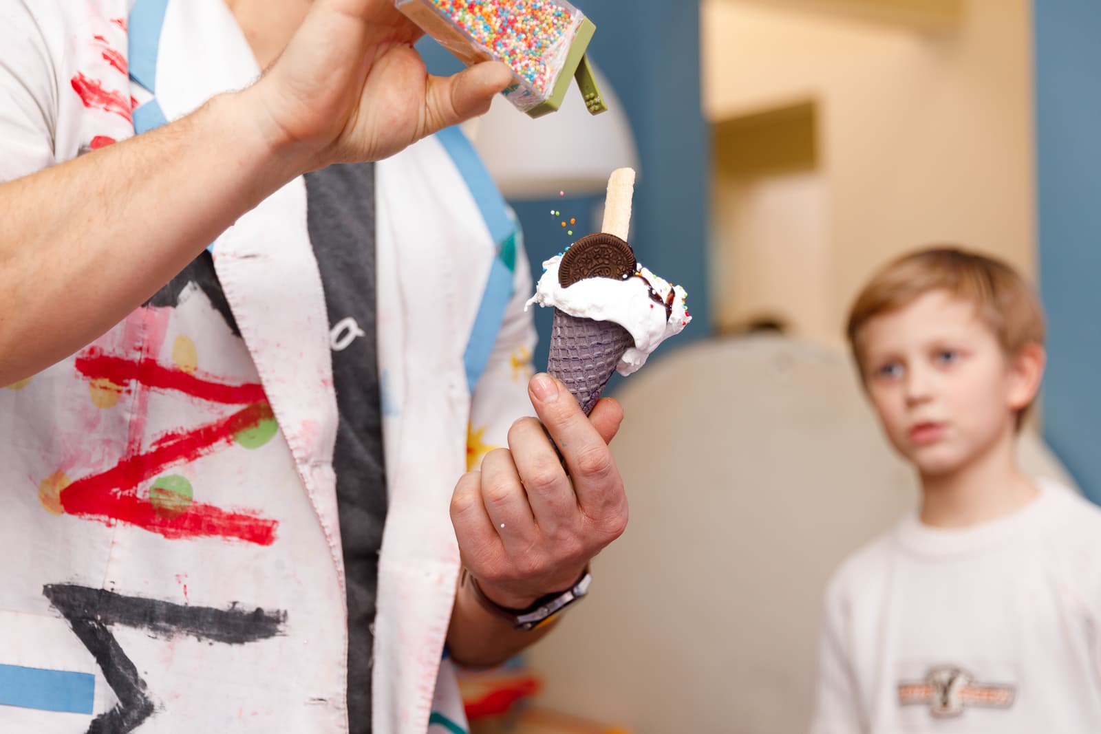 15 самых ярких экспериментов и изготовление мороженого: «Опыт с лицом», «Мозги профессора», «Морозильный ящик», «Вкус сухого льда», «Выстрел пробки», «Гигантские пакеты», «Химический светофор», «Сталактит», «Огонь на руке», «Лизуны», «Дымовая завеса», «Бабахнем», «Мыльная каша», «Египетская ночь» и конечно вкуснейшее мороженое.