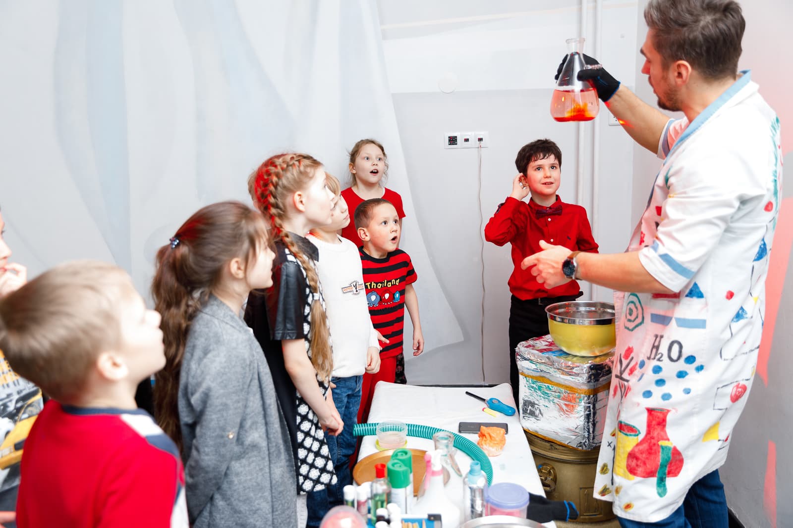 Праздник превращается в лабораторию, где взрываются вулканы, летает азот и кипит интерес! Научное шоу — это как “Химия + Волшебство = Восторг